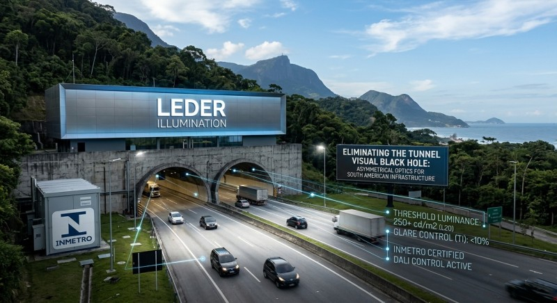 Meta Description: Discover how LEDER Illumination solves the tunnel "visual black hole" effect using asymmetrical linear light distribution. Expert INMETRO-compliant lighting design for South American infrastructure.