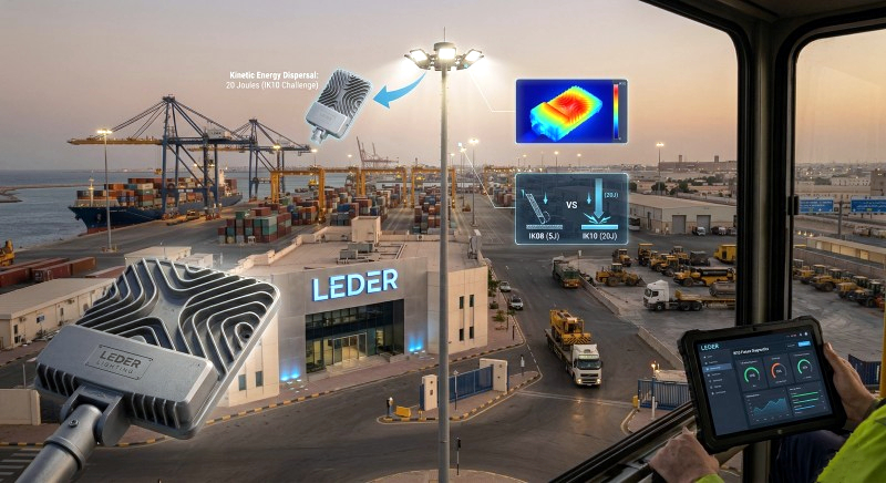 Q2: Does increasing the thickness of the aluminum housing to achieve IK10 reduce the fixture's heat dissipation?A: If poorly designed, yes. Thick, solid blocks of metal trap heat. LEDER Lighting solves this by using advanced structural reinforcement ribs. Instead of just making the housing uniformly thicker, we use deep external ribs that provide mechanical rigidity against 20-Joule impacts while simultaneously increasing the surface area by up to 45% for superior convective cooling.
