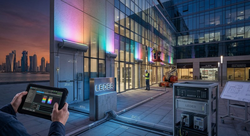 The Tech: DMX512 protocol allows for 512 channels of control, enabling complex color-changing sequences essential for Qatar’s iconic commercial facades.