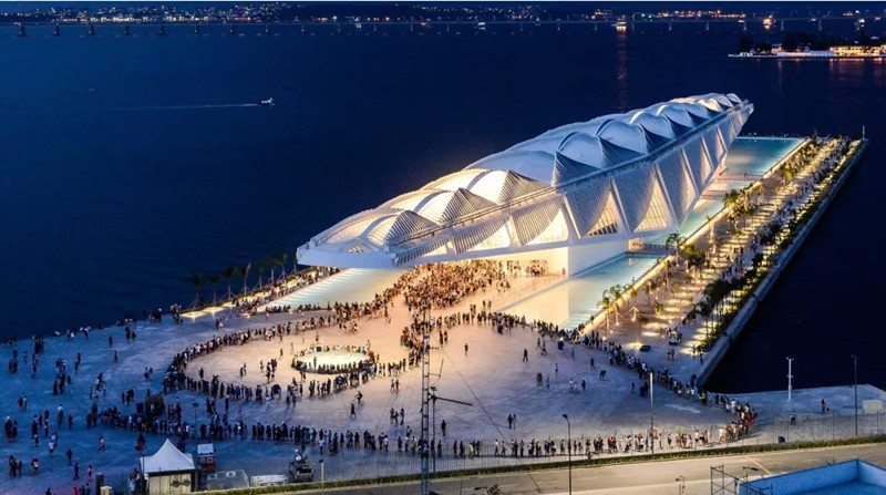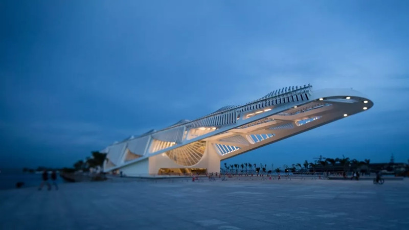 Inspired by Rio culture, the museum explores the relationship between the city and the natural environment through architecture. The square surrounds the building and extends along the pier. The side of the building facing the square is 75 meters long and the side facing the sea is 45 meters long, which highlights the extension of the museum from the wharf to the bay. The permanent exhibition is located upstairs with a 10 meter high roof and panoramic view of Guanabala Bay. The total height of the building is limited to 18 meters, which protects the view from the UNESCO World Heritage Site St. Bento Abbey Bay.