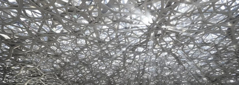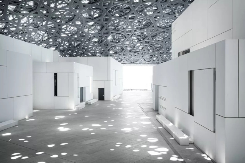 The extremely complex geometric texture of the dome has become one of the biggest highlights of the building. Jean Nouvel and structural engineers have carefully designed to make Abu Dhabi's sunlight gently sprinkle on the white inner wall after layers of filtering and overlapping. With the change of sunshine track, the indoor "rain of light" is also in infinite change.