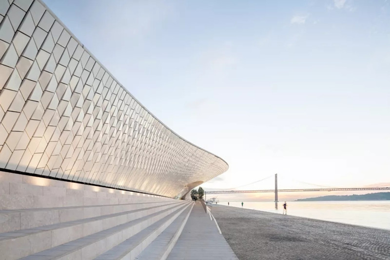 On the banks of the Tagus River in the Belem District of Lisbon, great Portuguese explorers set sail here to explore the world. The new riverside Museum of contemporary art, or Maat, was officially opened in October 2016 by al_ A firm design.