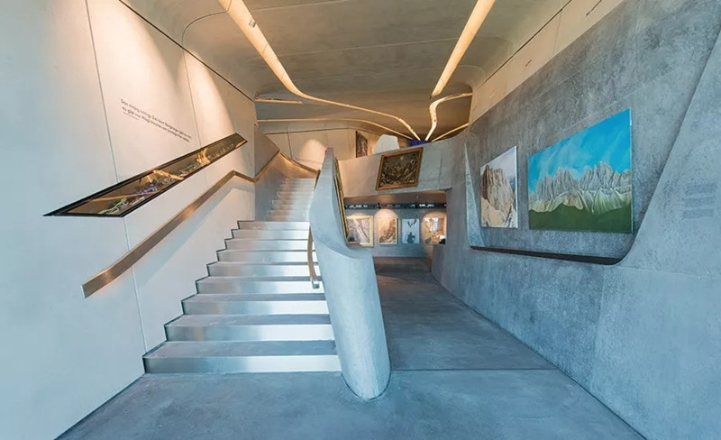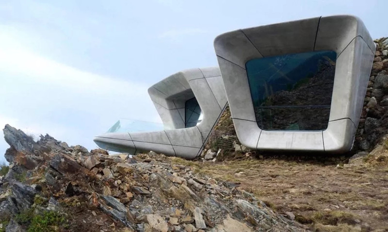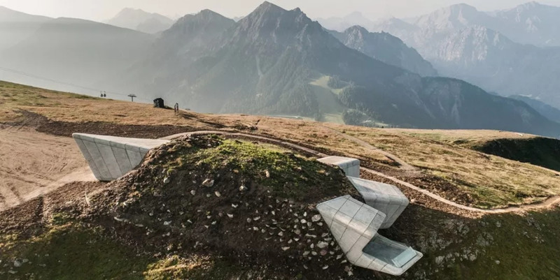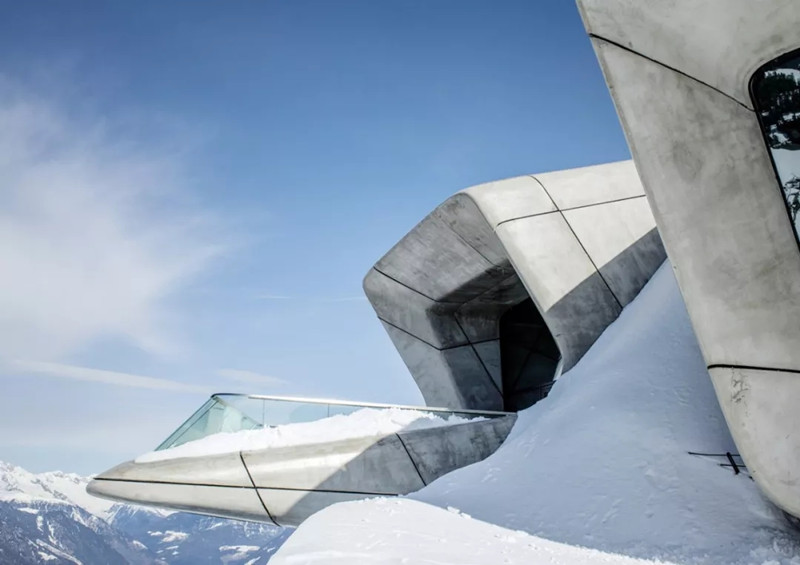 One of the latest museums, corones, is embedded on the side of a mountaintop - a concrete space designed by the late architect Zaha Hadid.