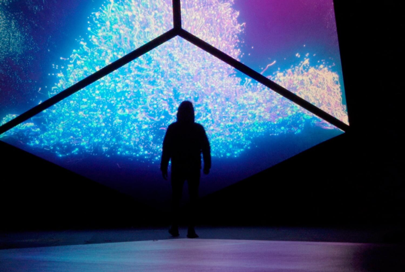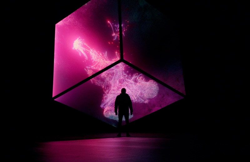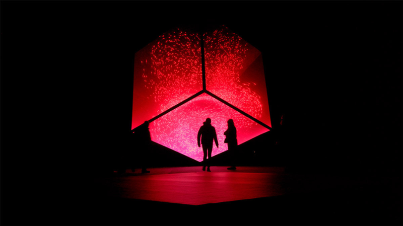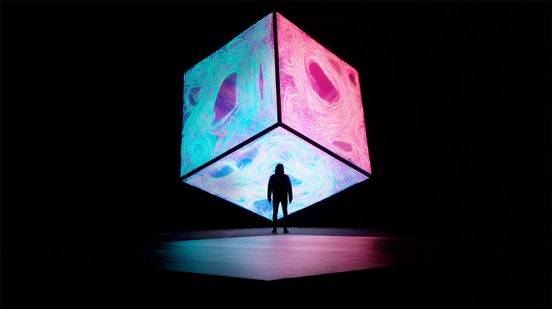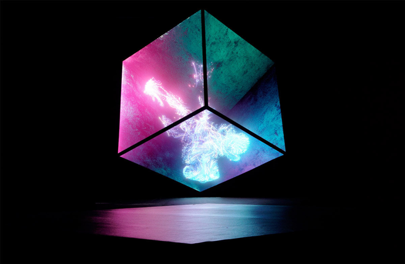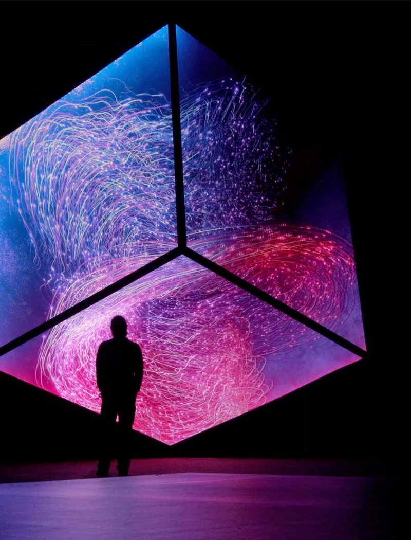 This led device is becoming the main function and focus of guest participation. The cube is treated as a glass box, and a series of visual effects are designed to provide a window for revealing the dream image of the birth of the universe. The fluidity of content becomes the main movement, which reveals that the simple form evolves into the complex structure in the limited geometric space.