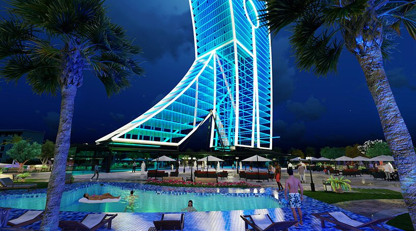 There is a tall sculpture and a symbolic 170-meter tall skyscraper in Dubai, UAE. It turns ordinary nails into a new dimension, flying towards the city's skyline. Israeli artist zygo and his creative team plan to build the largest artwork ever-the clothespin tower.