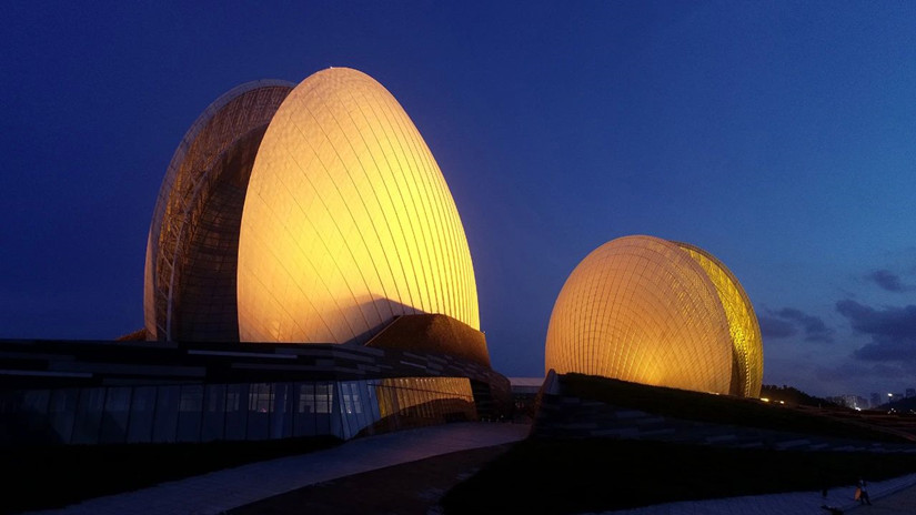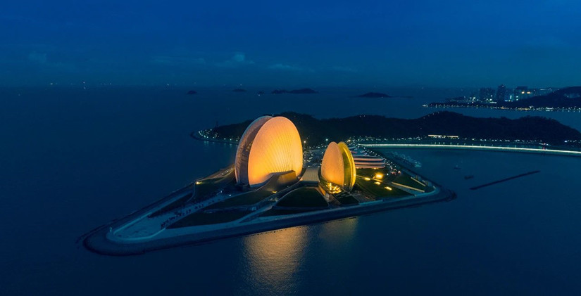 Zhuhai Grand Theater, commonly known as "Sun and Moon Shells", has a