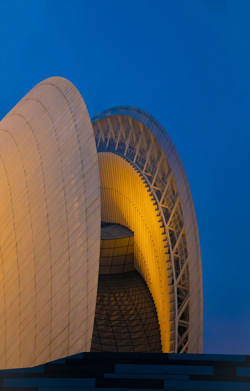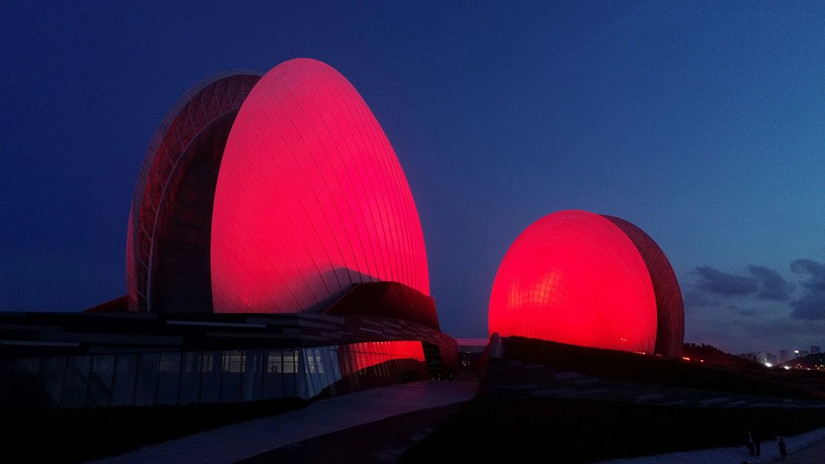 Grand Theater is composed of two shell-shaped buildings, one large and one