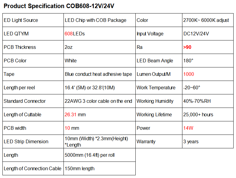 The COB led strip is a high-density led lighting strip made by COB encapsulation, which can reduce the thermal resistance of the high-density strip circuit system, greatly improves the life of the LED, and the light flux density is high, the glare is small, and the light is uniform and there is no dark area.