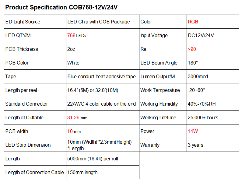 • Product description: 768LEDs COB LED Strip Lights DC12V