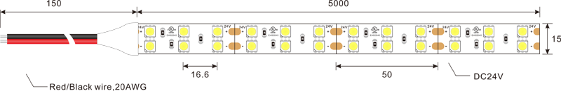 Front View – 120LEDs/Meter - 5050 SMD - 15mm - DC24V