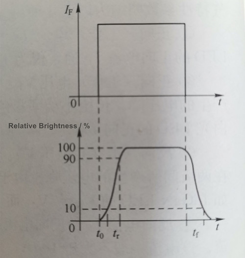 LED starts to emit light time tr (rise time). tr refers to the time elapsed from turning on the power to make the luminous intensity reach 10% of the normal value until the luminous intensity reaches 90% of the normal value.