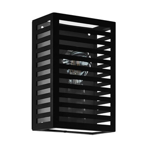 - Sleek rectangular frame finished in classic black, adorned with a resilient steel grill and clear glass panels.