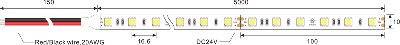Front View – 60LEDs/Meter - 5050 SMD - 10mm - DC24V