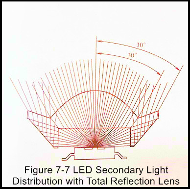 A. LED Secondary Light Distribution with Total Reflection Lens:
