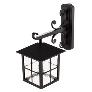 Elevate your outdoor ambiance with a touch of British flair. The arm-mounted wall bracket boasts graceful curves and captivating accents, perfectly complementing the angular silhouette of the lamp. It's a symphony of design elements that adds a touch of sophistication to any setting.