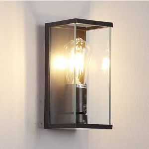 Crafted with a sleek aluminum frame and clear glass panels, our outdoor wall lights boast a contemporary design that enhances any modern building. The dark gray finish and angular shape provide a sophisticated touch to your exterior.