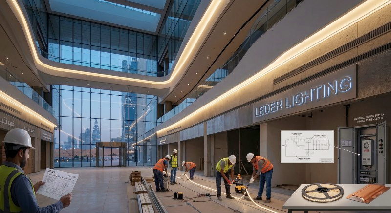 Actions: The lead MEP contractor, tired of the labor-intensive process of running parallel power cables and hiding multiple drivers every 5 meters, opted for LEDER Lighting's 50m Constant Current pure copper LED strips. The product selected was fully SASO certified for safe import and deployment in the Kingdom.