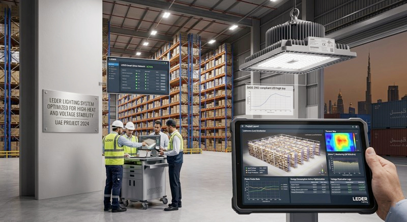 Meta Description: Expert guide for UAE contractors on sourcing high-volume industrial LED lighting. Solve voltage fluctuation and 50°C heat challenges with SASO-compliant LEDER Lighting solutions.