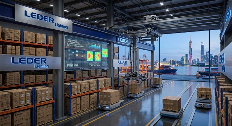 Meta Description: Discover how LEDER Lighting utilizes digital warehousing at the Guangzhou foreign trade center to guarantee 7-day shipping for 5000-set orders. CE/SASO certified.