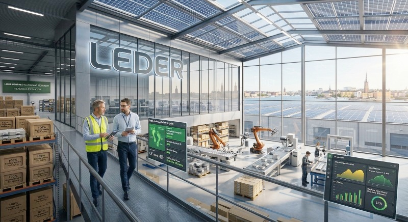 An LCA audit closely scrutinizes the energy mix of the manufacturing facility. LEDER Lighting operates a state-of-the-art manufacturing base powered largely by extensive rooftop solar photovoltaic (PV) arrays. By generating our own clean energy, we insulate our production costs from global grid fluctuations, allowing us to maintain competitive pricing for mass volume orders while securing our ISO 14001 environmental management credentials.